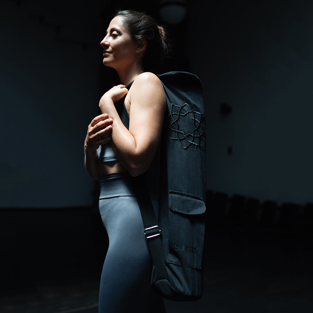 Su correa ajustable te permite llevarlo al hombro o cruzado, y su diseño flexible con apertura amplia hace que meter y sacar el mat sea súper simple. Apto para mats de Sukha, incluso los de hasta 6 mm de espesor.